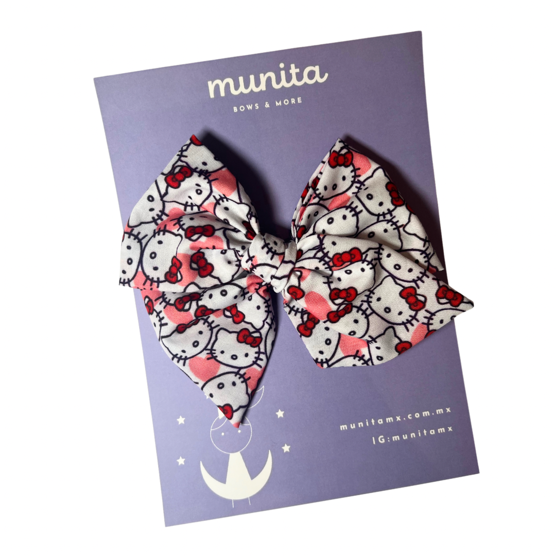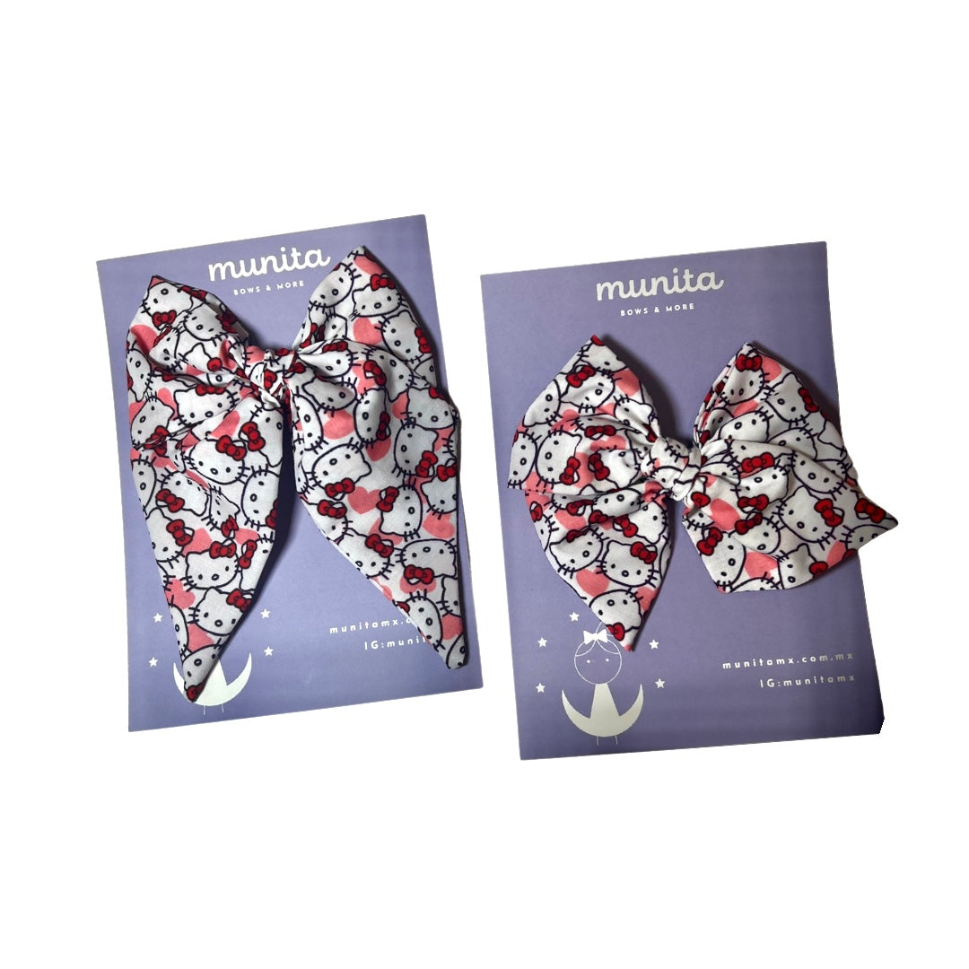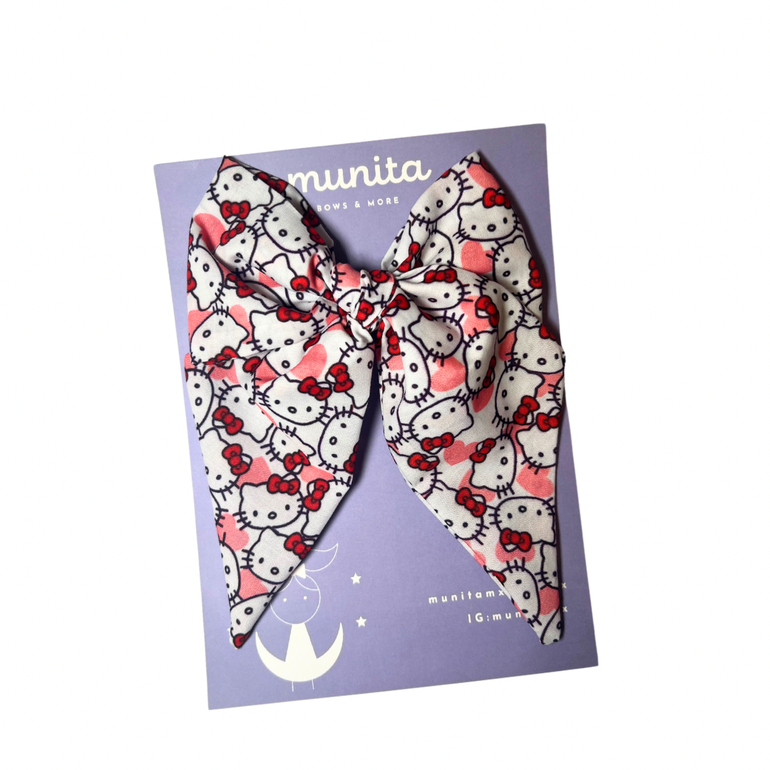 Moñito de tela marinero o cuadrado en tela de algodon de print de Hello Kitty