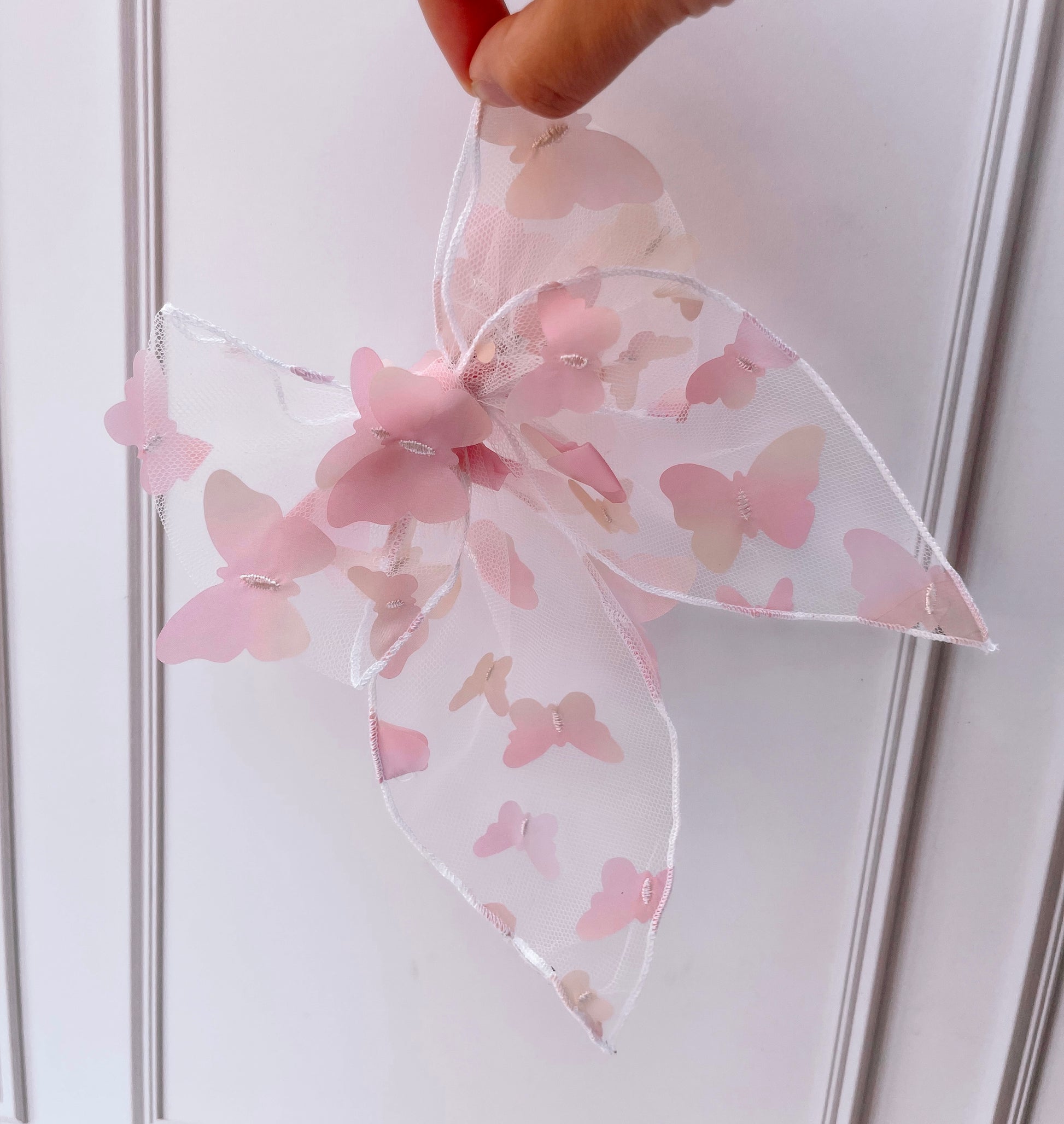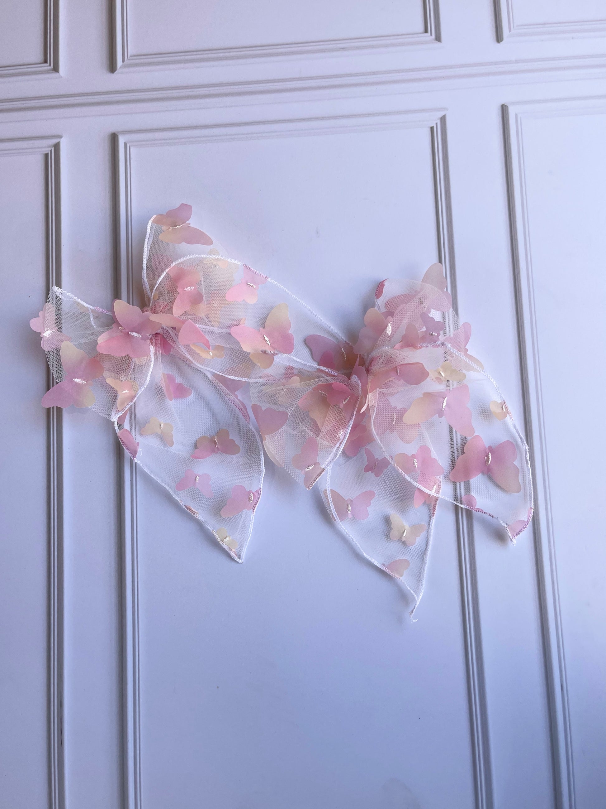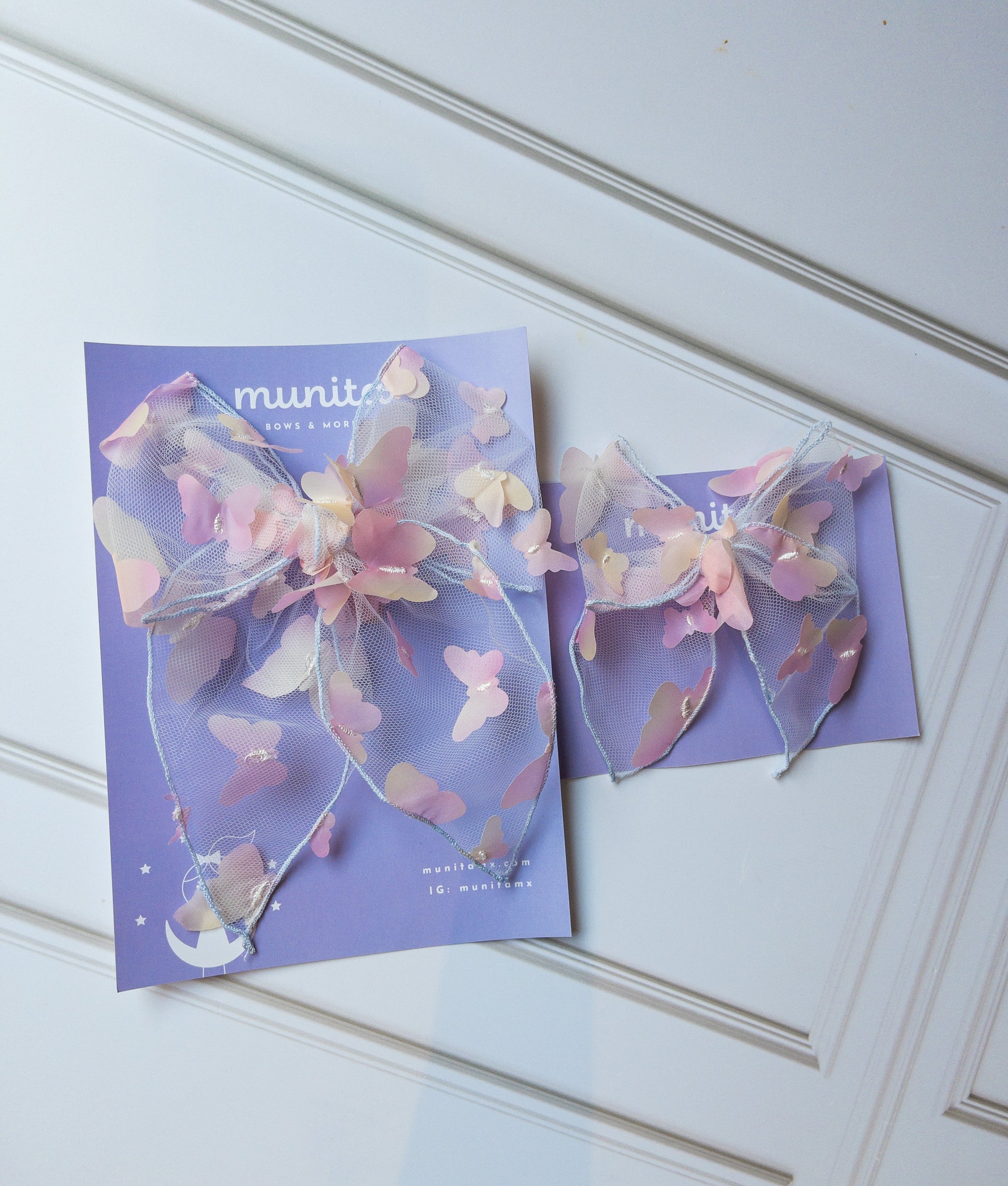 Moño de tul, con mariposas bordadas tamaño grande (15 cms aprox)