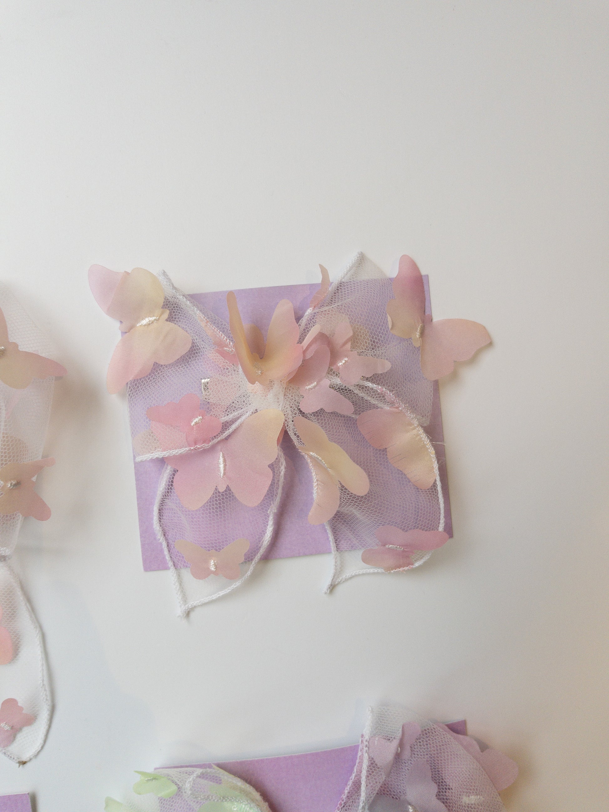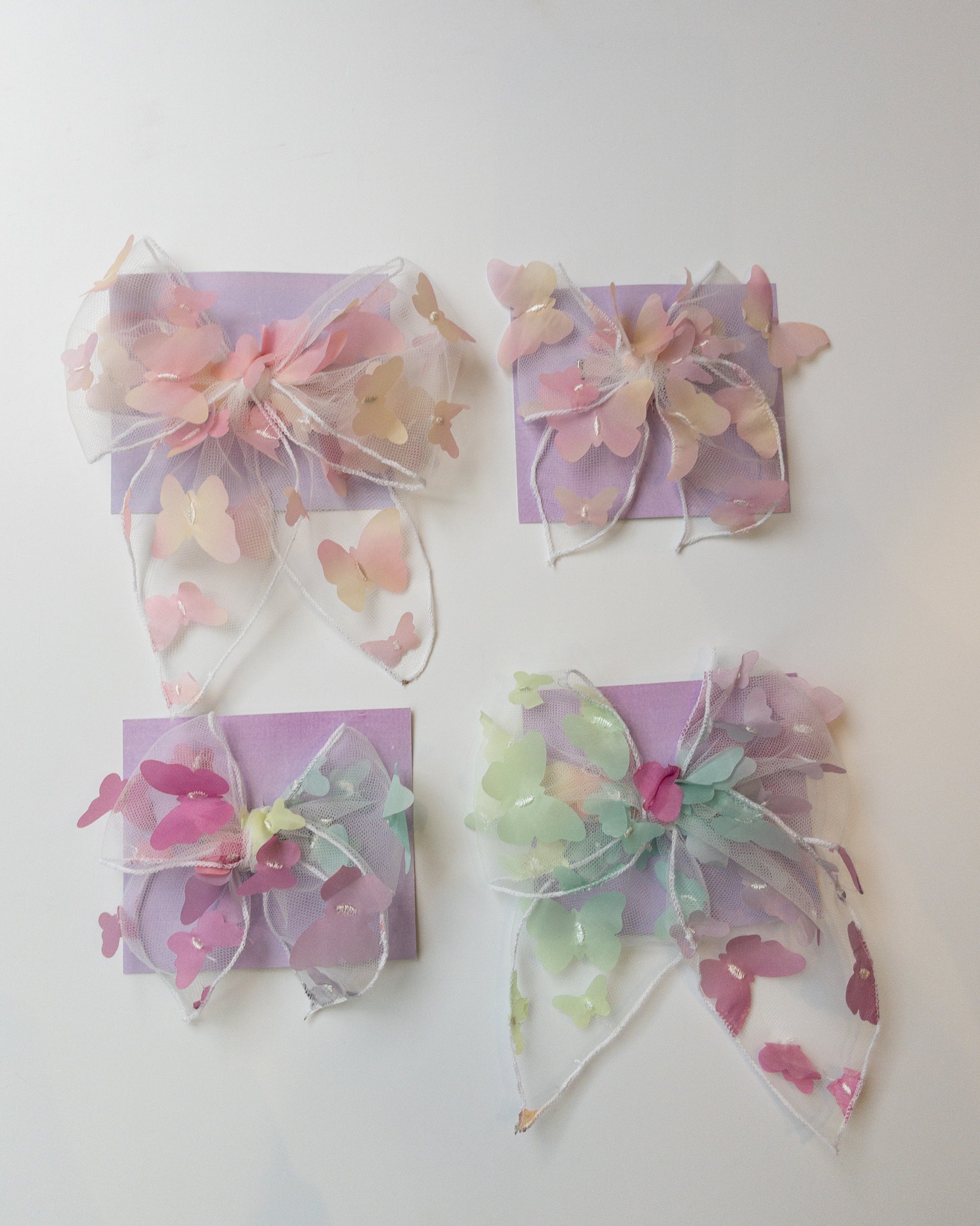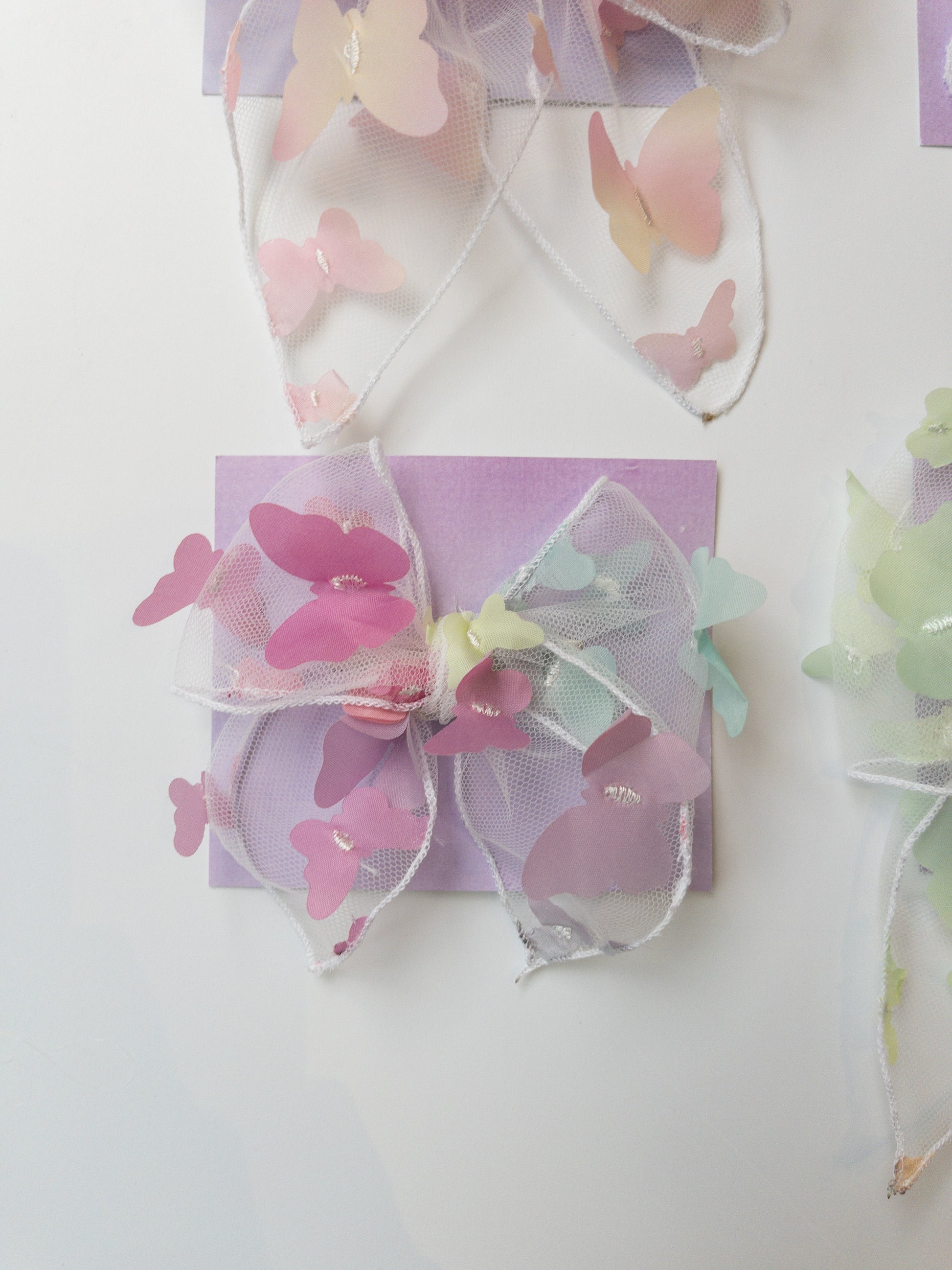 Moño de tul, con mariposas bordadas tamaño grande (15 cms aprox)