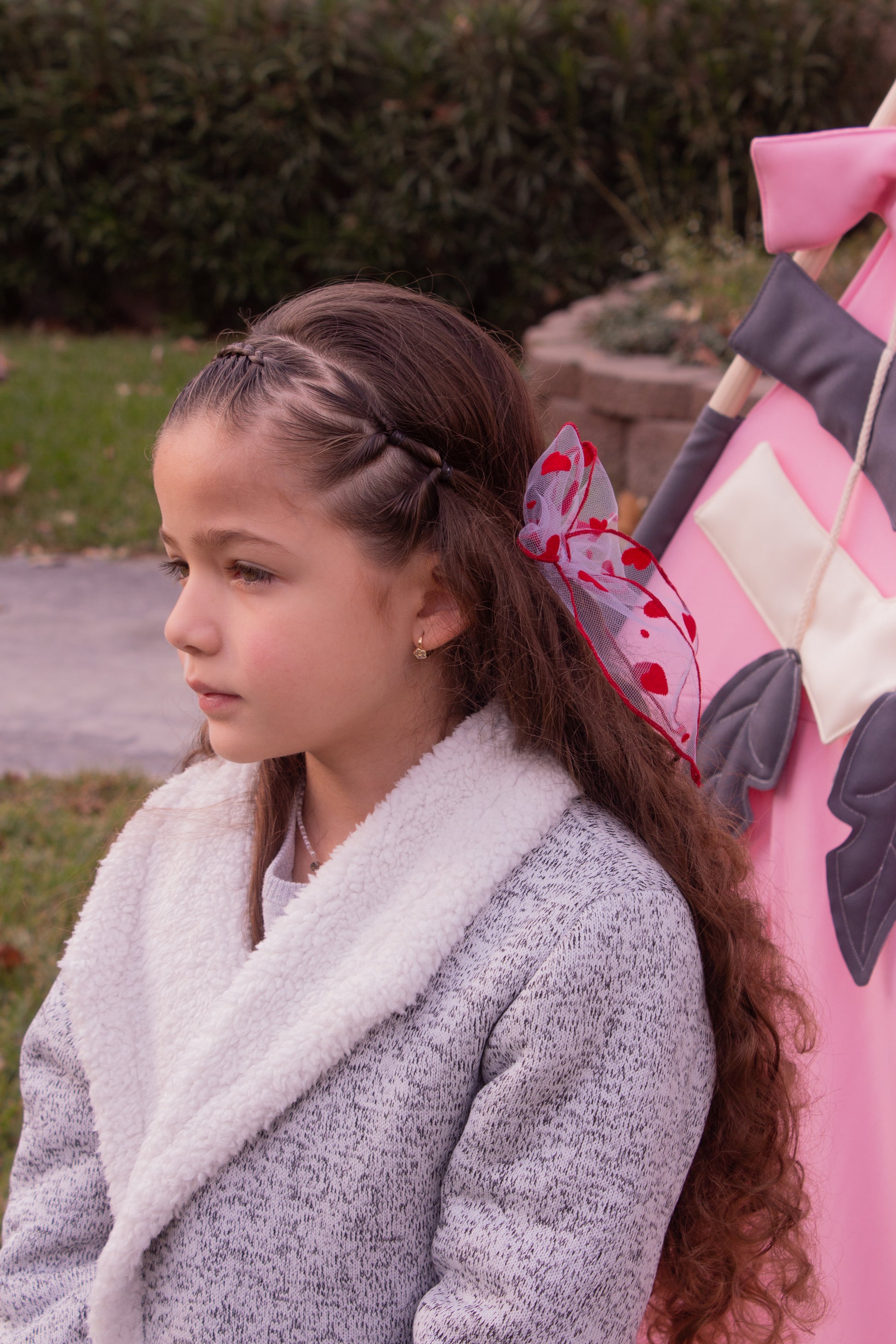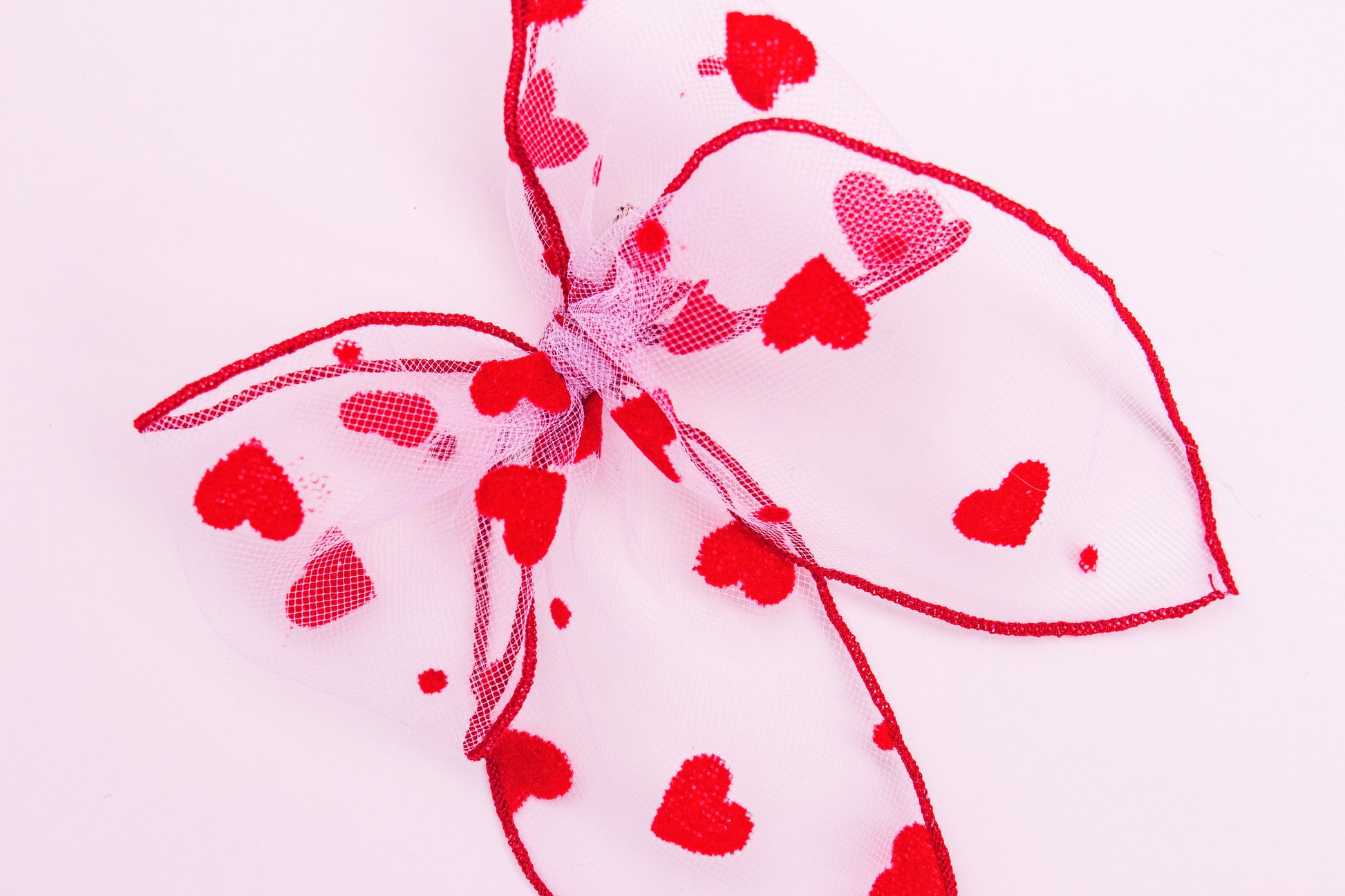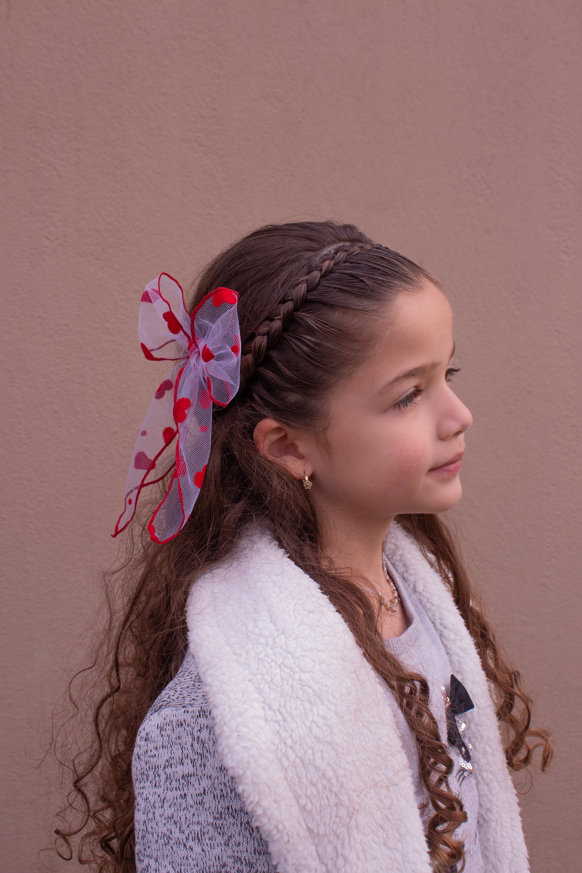 Hermoso moño de tulle con prints de corazon en tamaño grande ( aprox 14 cms)
