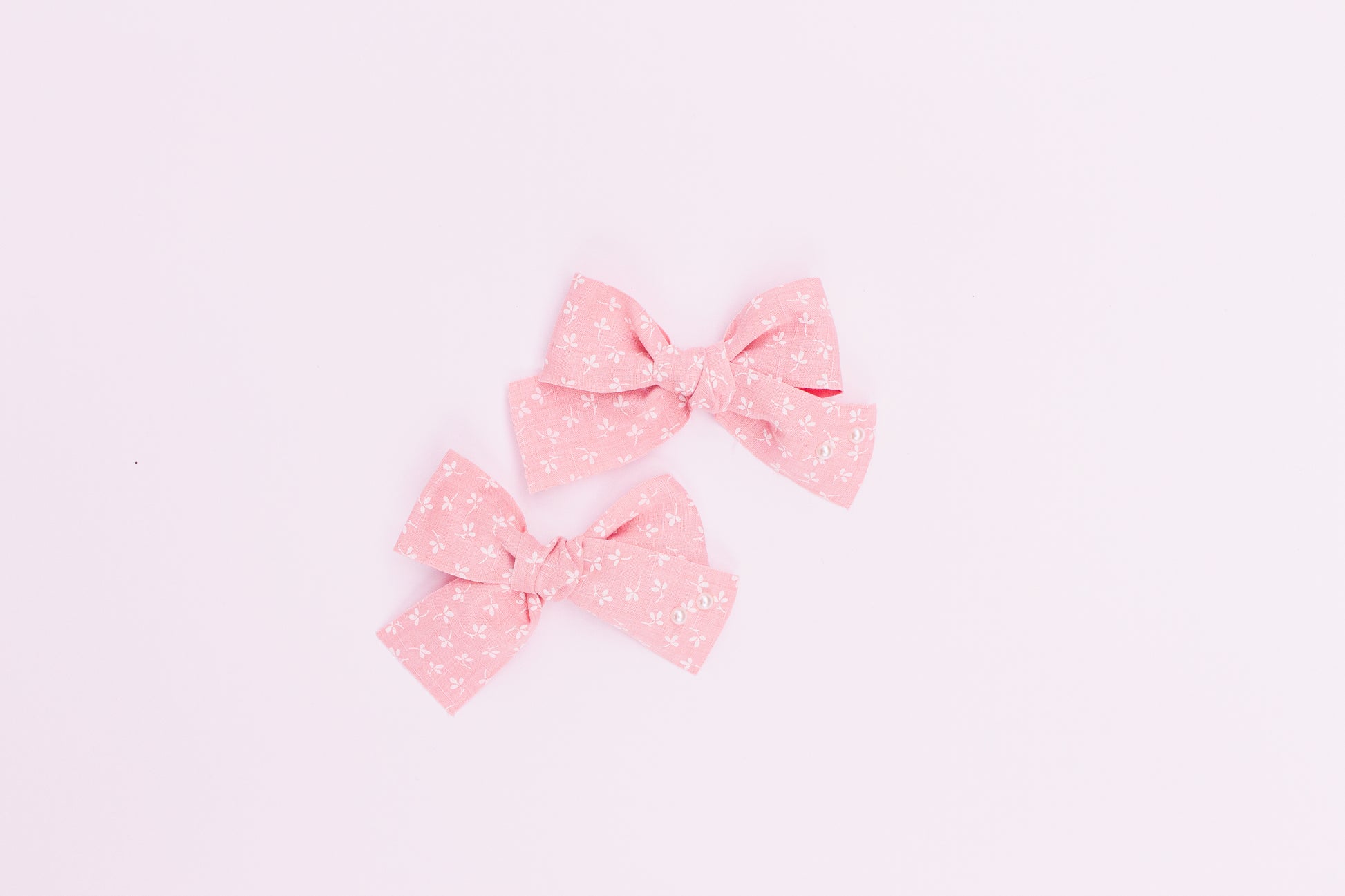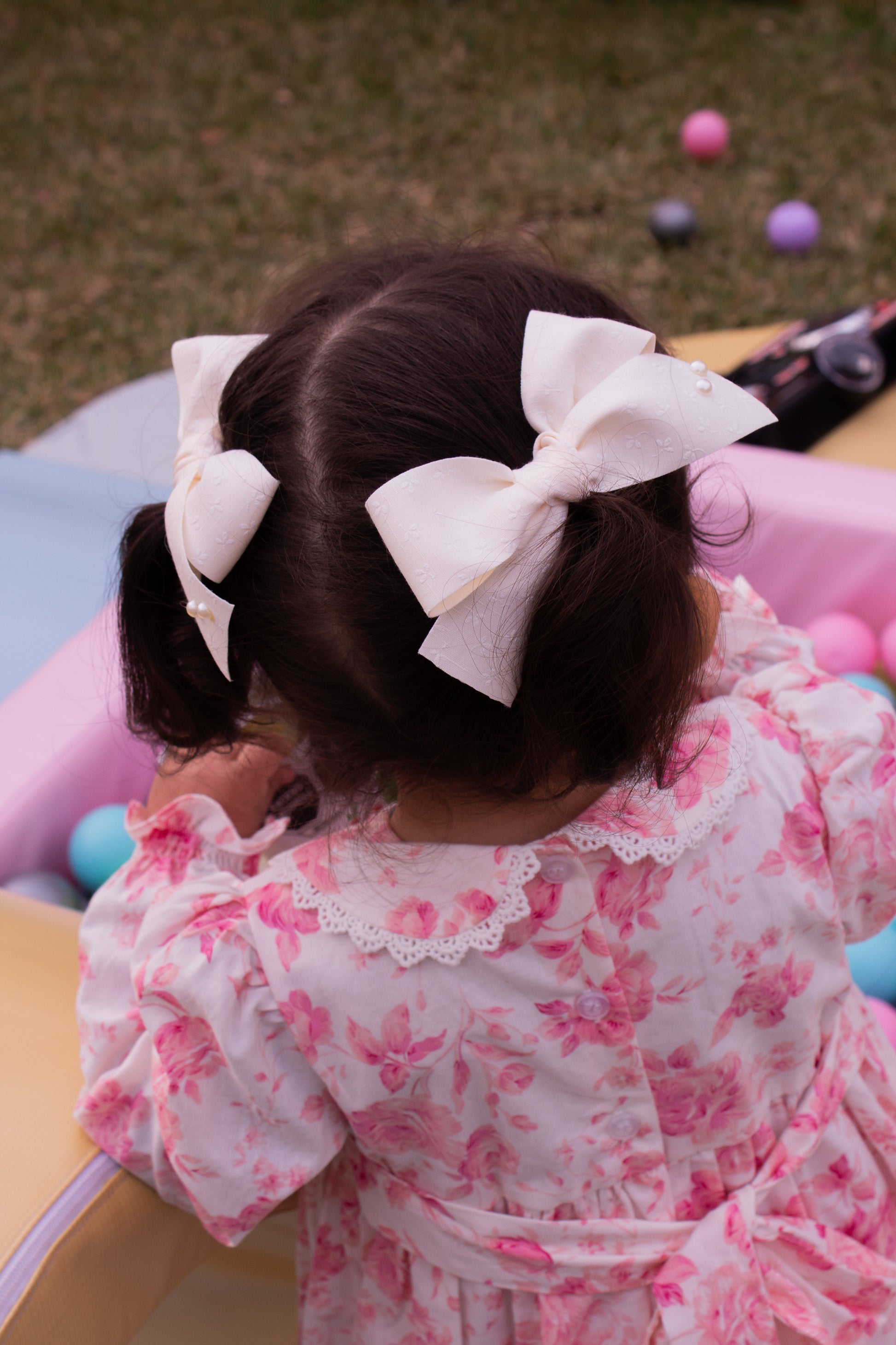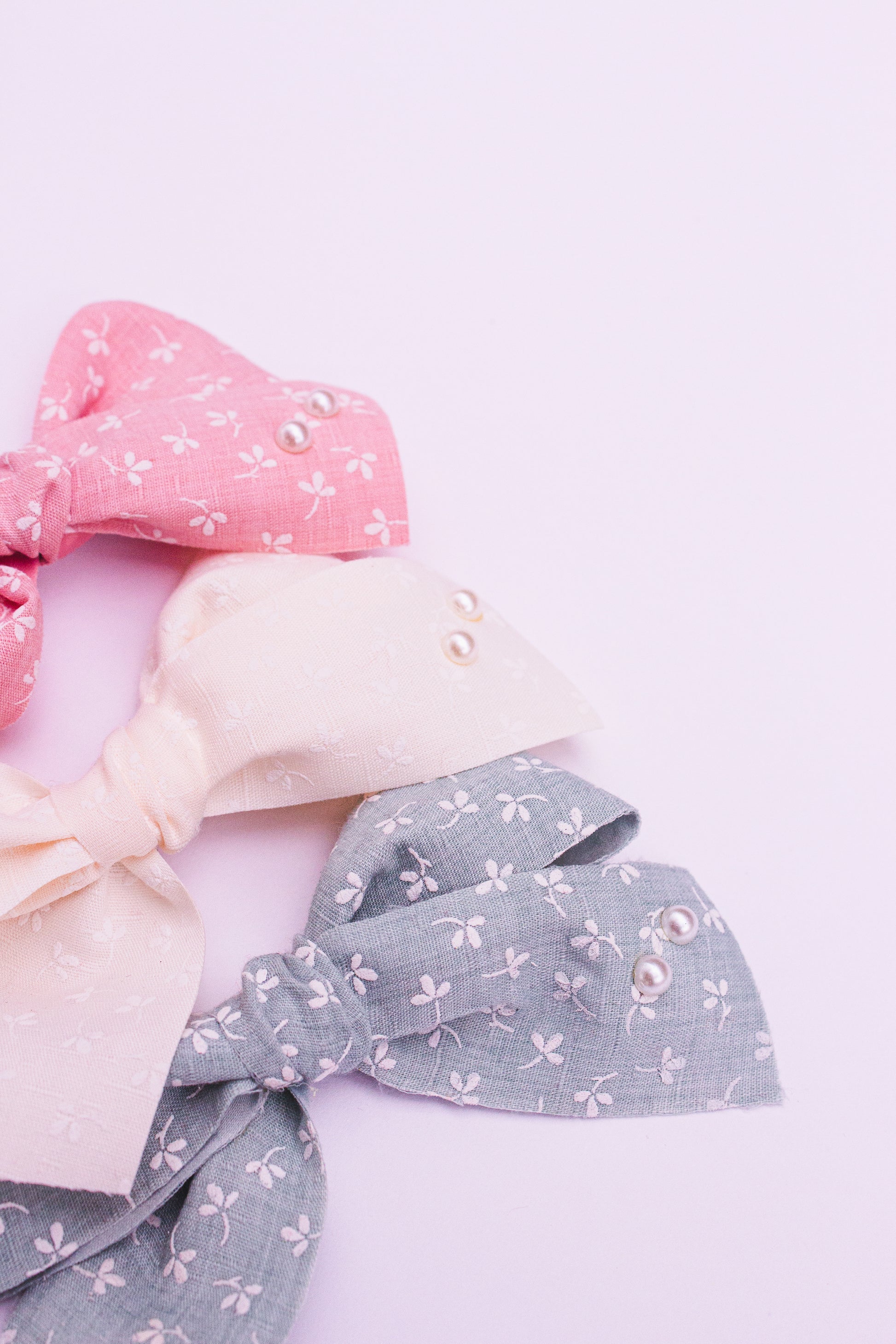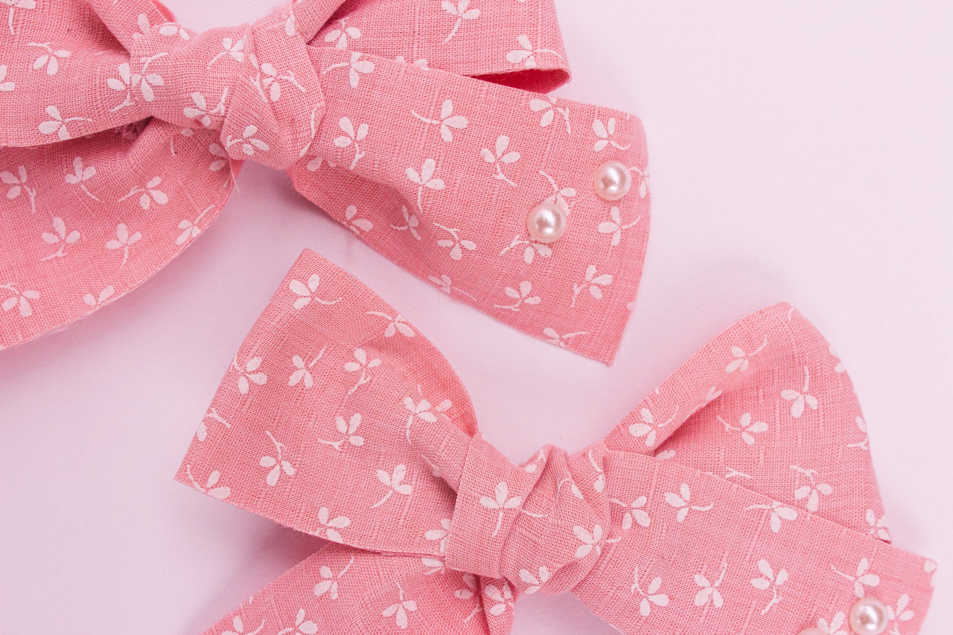 Hermoso par de moñitos primaverales estampados, pidelos en rosa, menta o ivory.