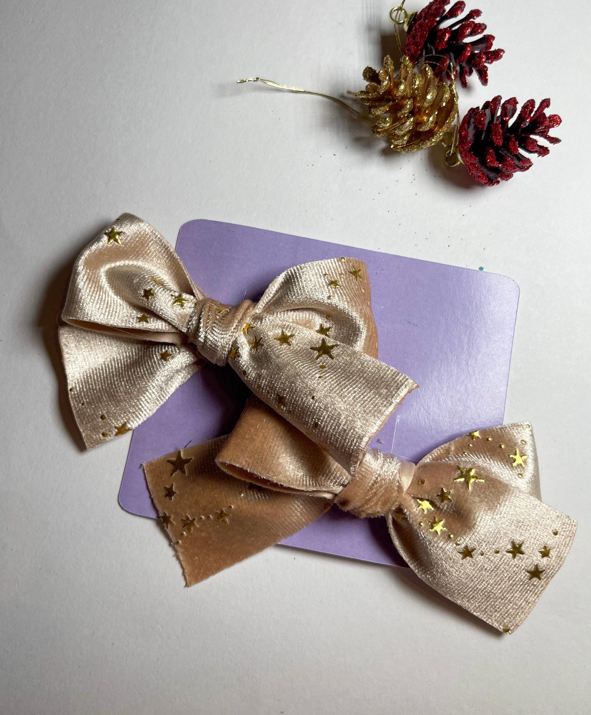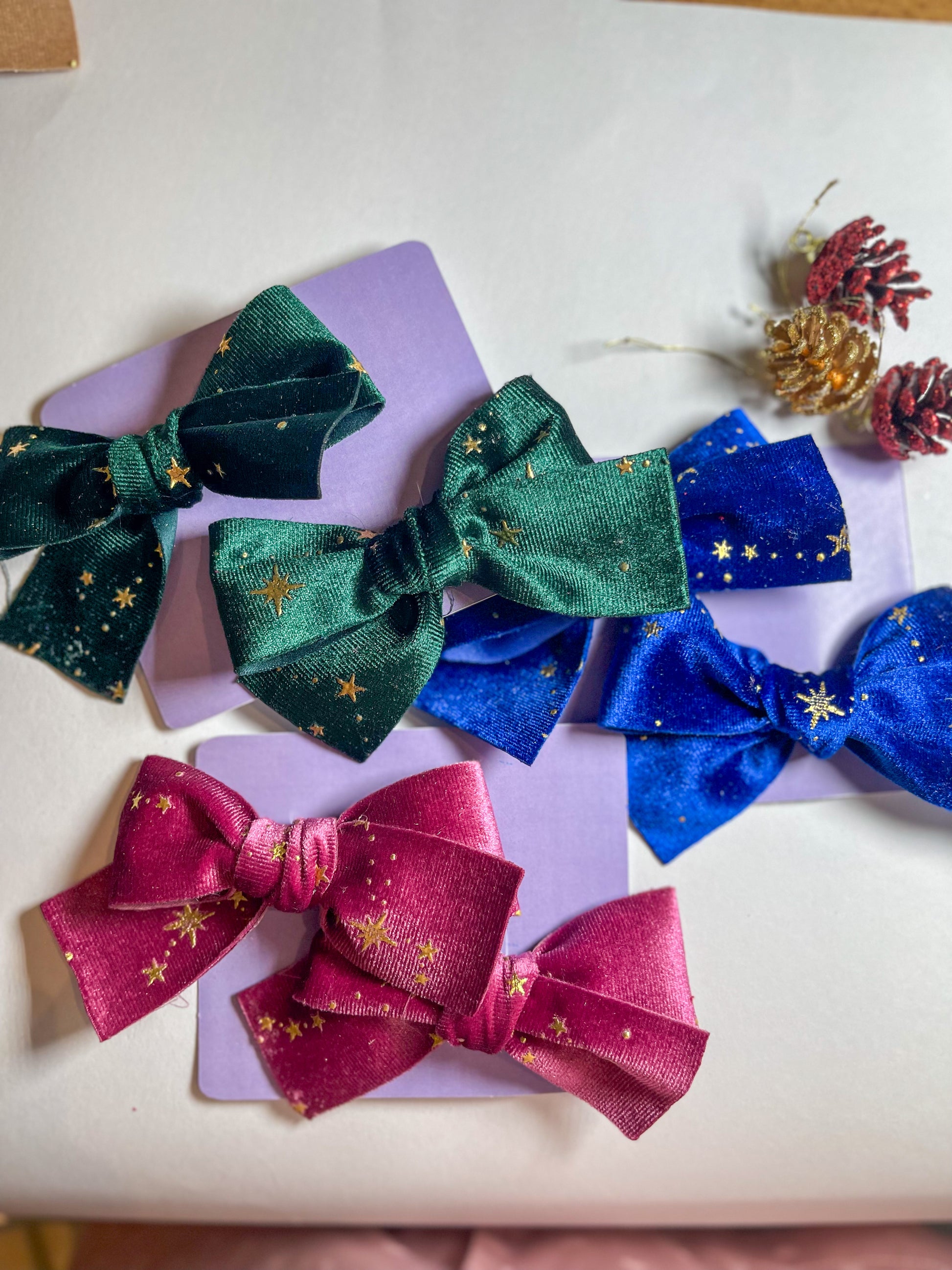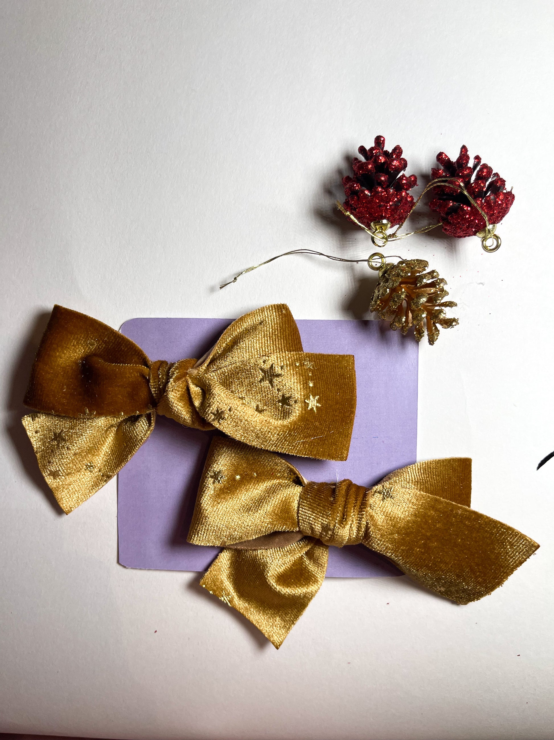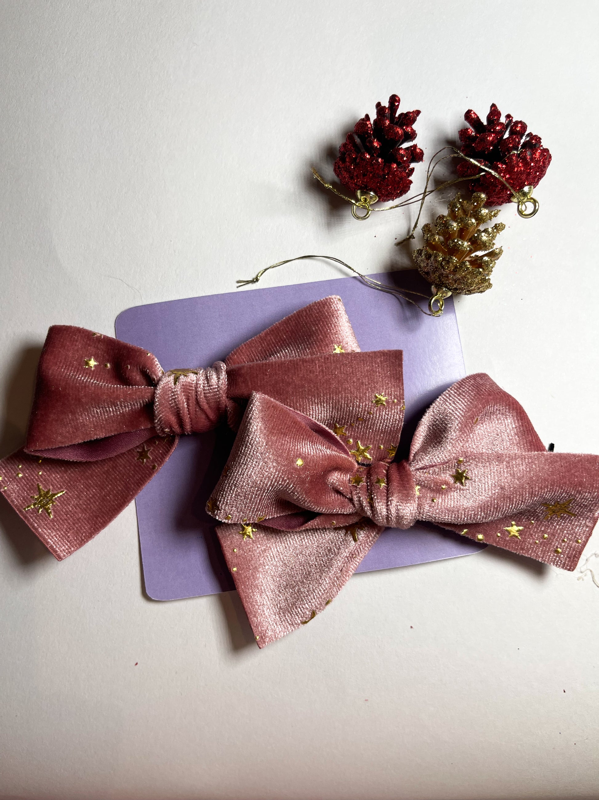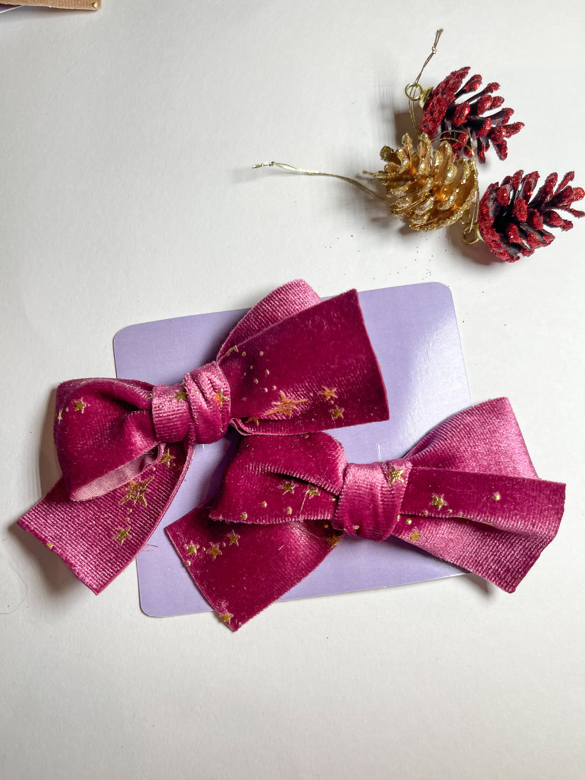 Moñitos en par en liston de terciopelo, medida aprox 7x10 cms