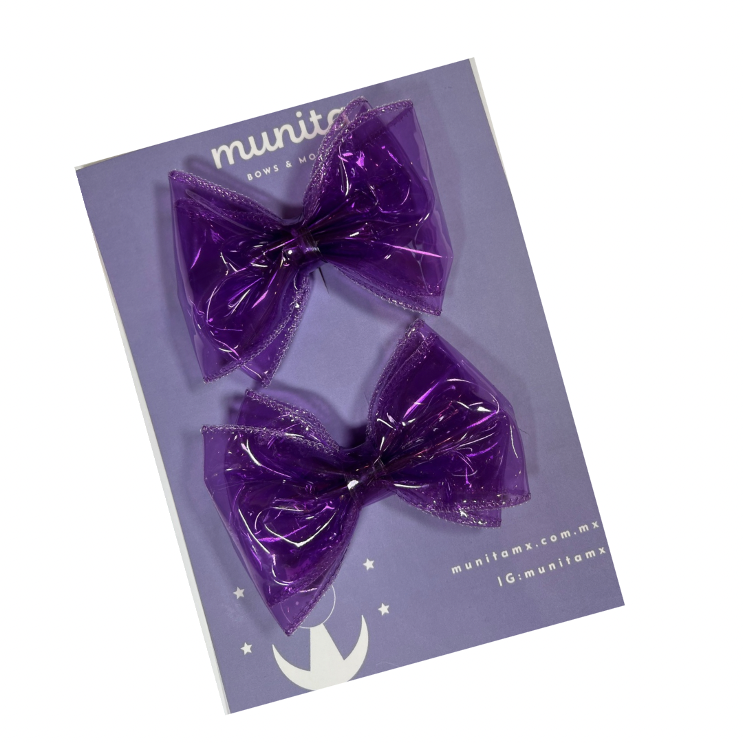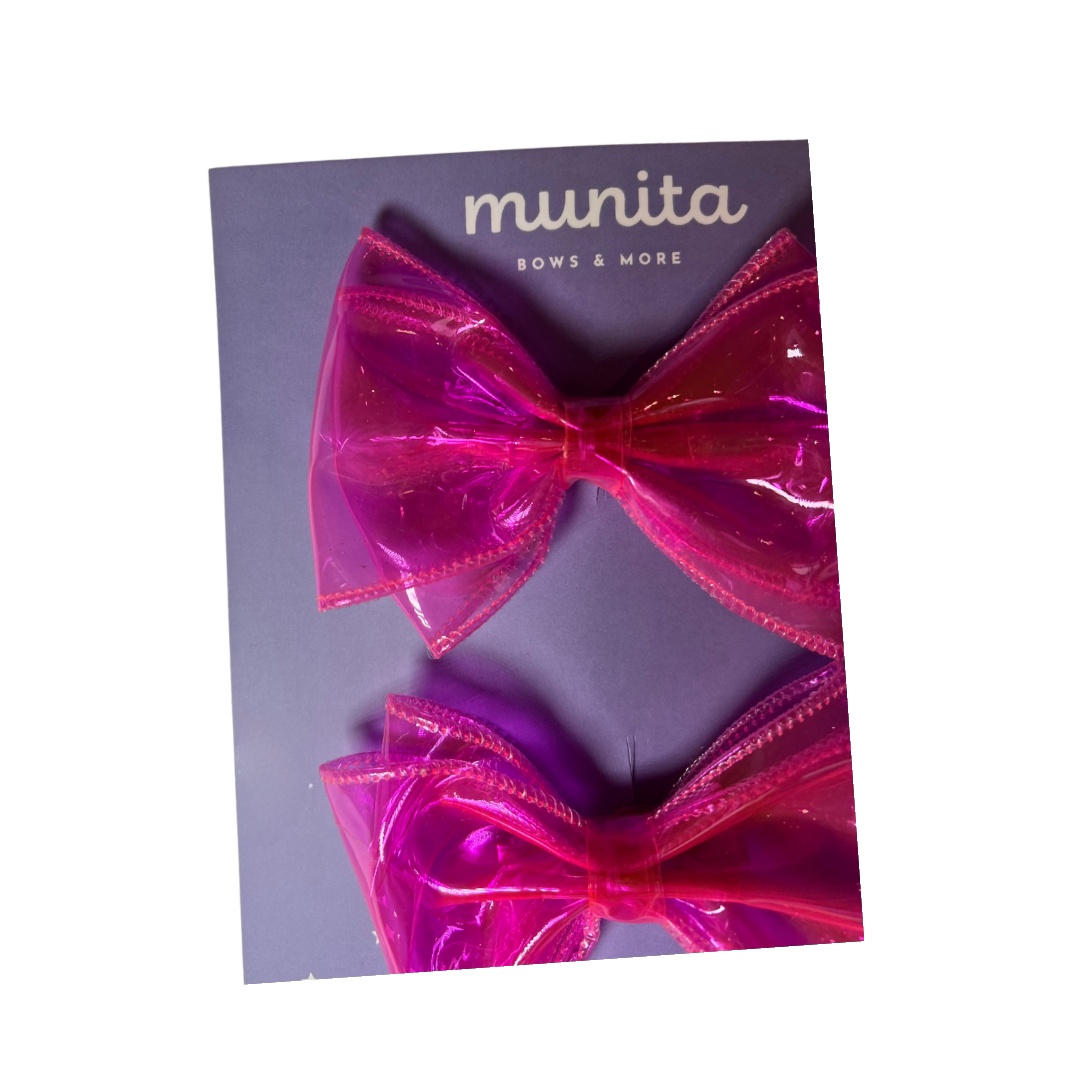 Par de moñitos para colita de aprox 7 cms de largo en colores fosfo fuscia, morado,azul,naranja